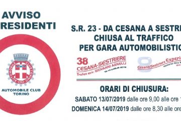 Sabato 13 e domenica 14 luglio, per lo svolgimento della competizione automobilistica Cesana-Sestriere, è prevista la sospensione temporanea della...