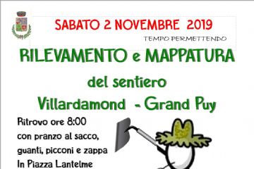 SABATO 2 NOVEMBRE 2019 - APPUNTAMENTO ALLE ORE 08.00 IN PIAZZA LANTELME MUNITI DI GUANTI, ZAPPA E PRANZO AL SACCO PER RILEVARE IL SENTIERO DA...
