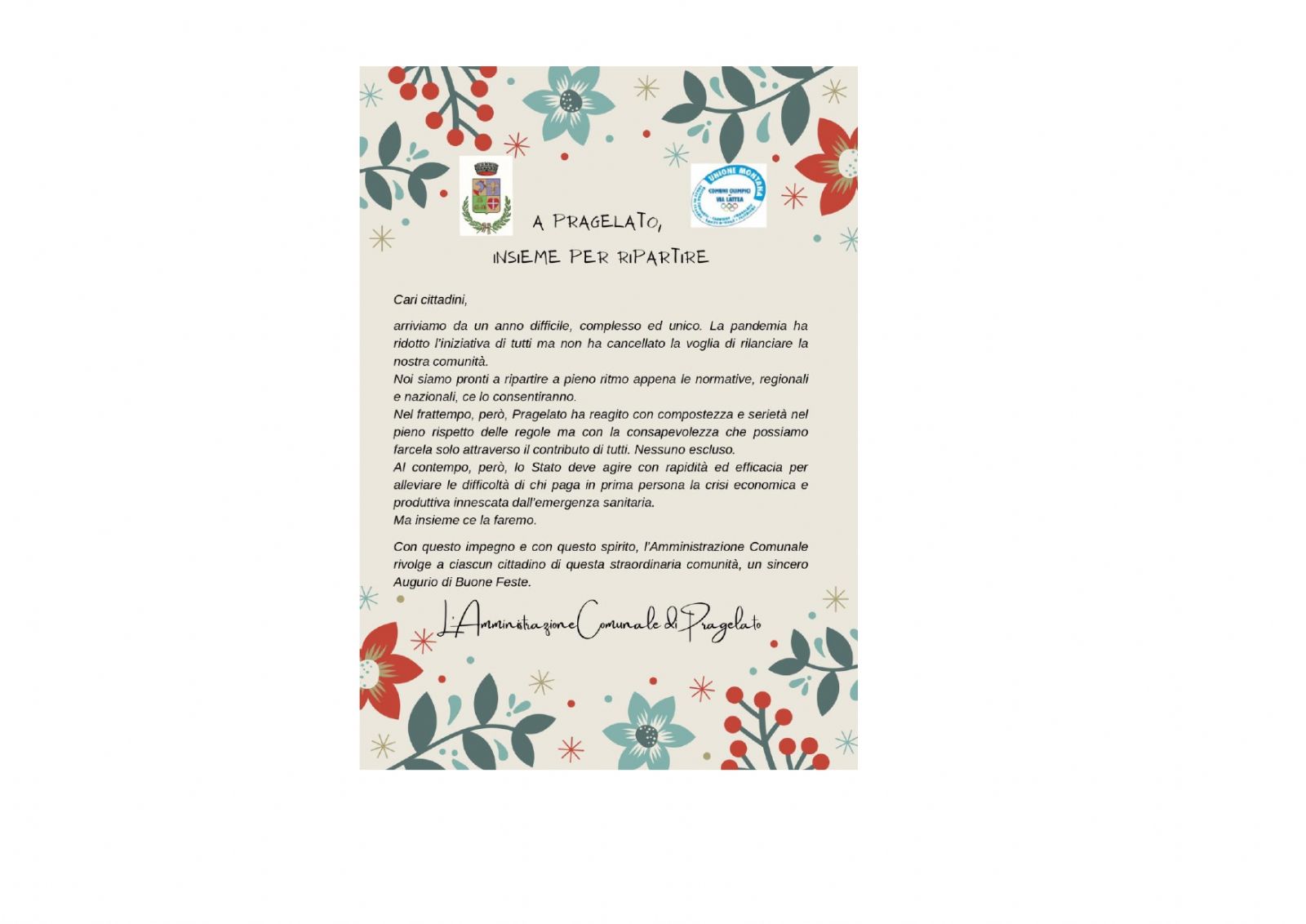 A PRAGELATO INSIEME PER RIPARTIRE