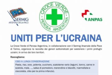 Uniti per l'Ucraina - Croce Verde di Perosa Argentina - Avviso per la raccolta di generi di prima necessità e censimento disponibilità abitative.