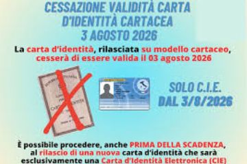 Si informano i cittadini che, a partire dal 3 agosto 2026, la carta d’identità cartacea non sarà più valida.