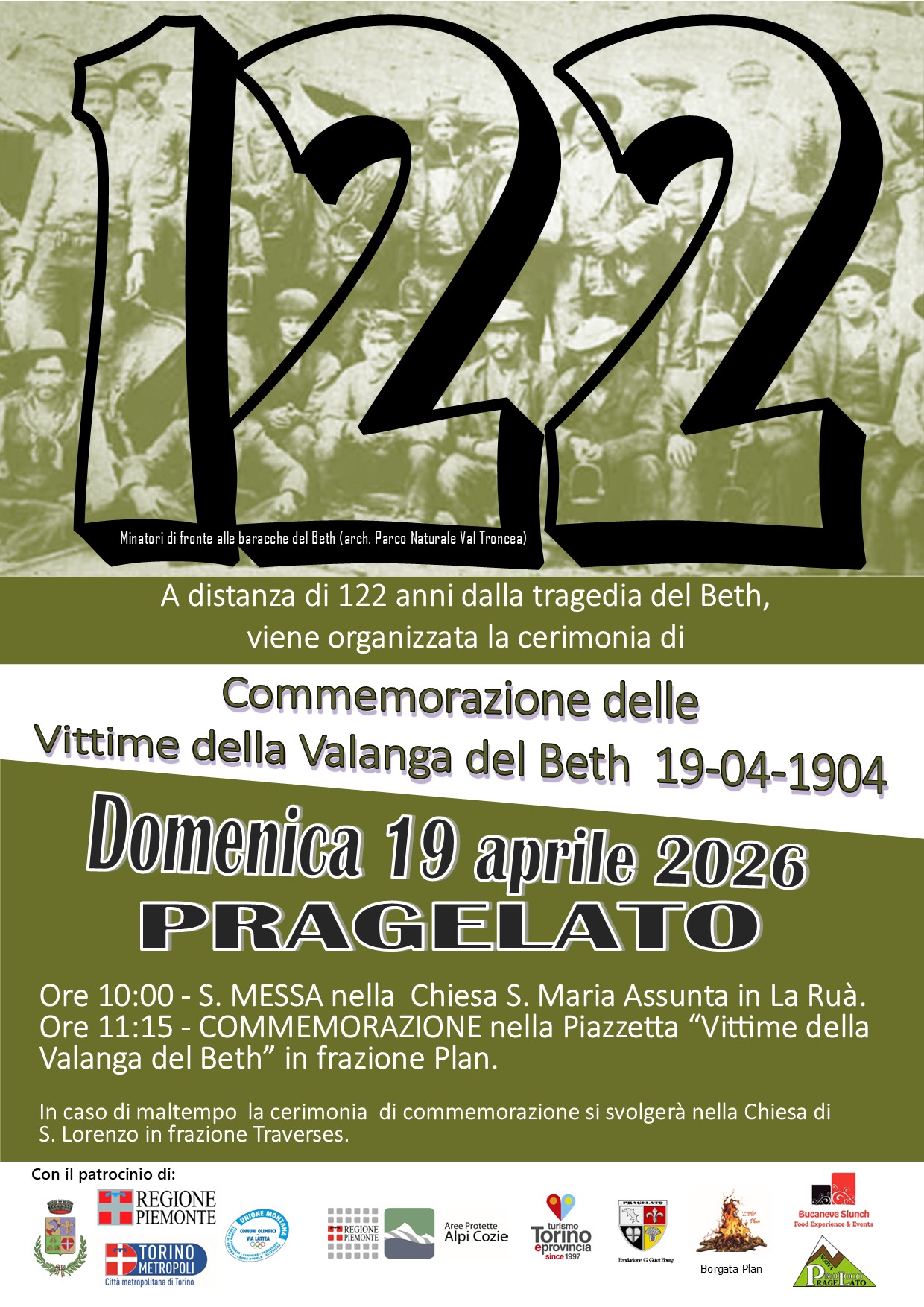 Domenica 19 aprile 2026 avrà luogo la celebrazione in commemorazione delle Vittime della Valanga del Beth, che ebbe luogo il 19 aprile 1904.