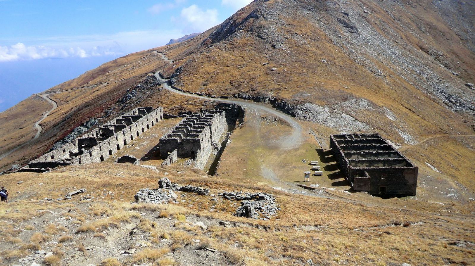 Da qui si risale infine al Gran Serin, inizialmente su strada, poi imboccando un sentiero di sinistra non segnalato che taglia i tornanti; l’ imponente fortificazione di vetta si trova al culmine della strada che l’ attraversa. Scendendo poi di cresta si arriva rapidamente alla grande caserma di servizio a cavallo di un piccolo colletto con panchine per pranzare e lago sottostante.